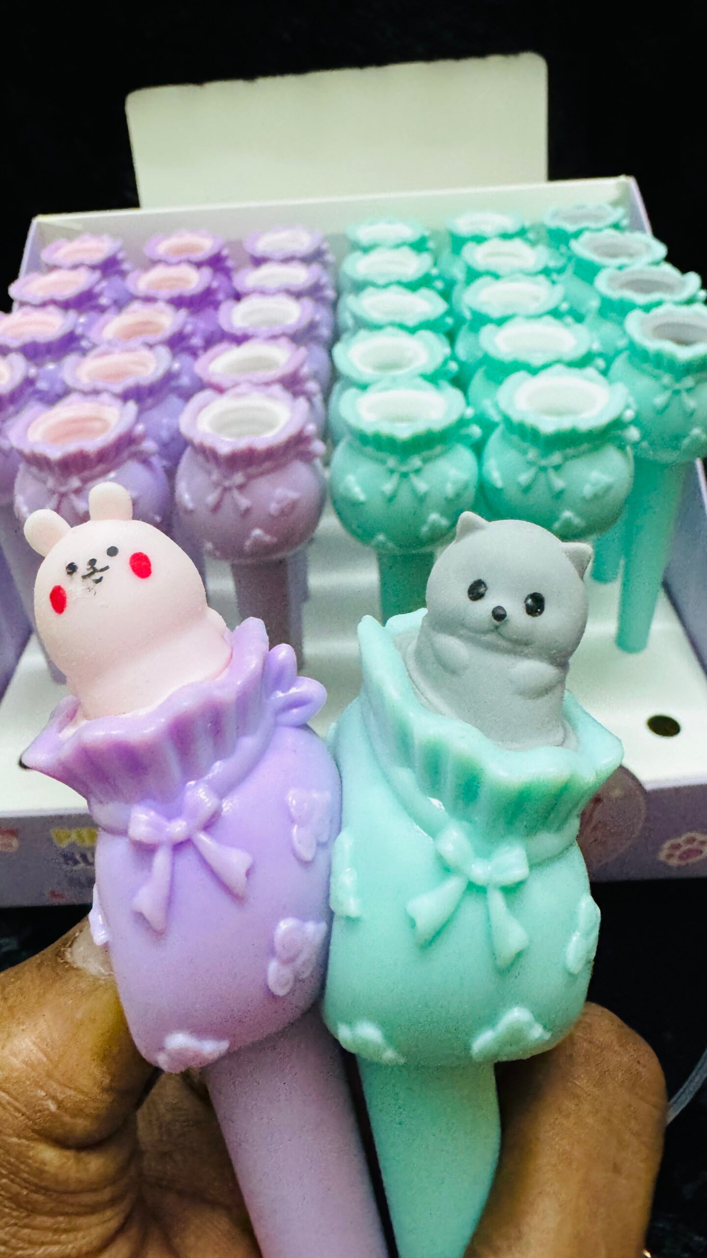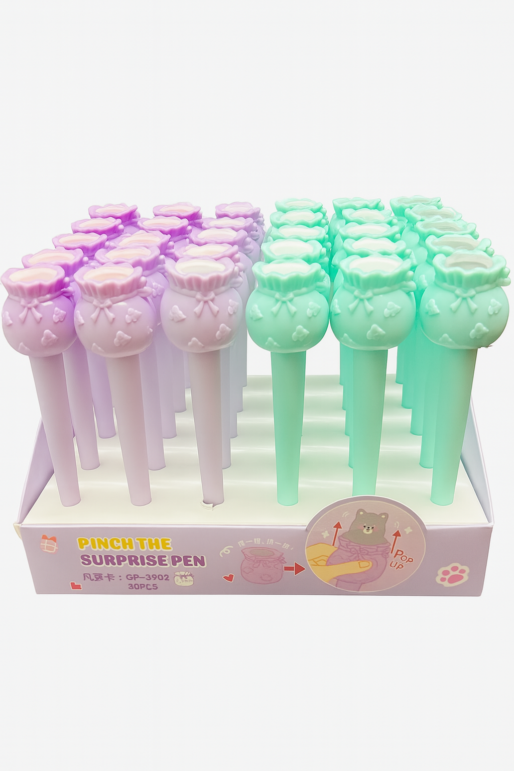 These “Pinch the Surprise” pens feature a pastel pot design that pops out a cute character when squeezed! Fun, interactive, and perfect for kids or anyone who loves playful stationery. A great combo of writing utility and surprise charm!